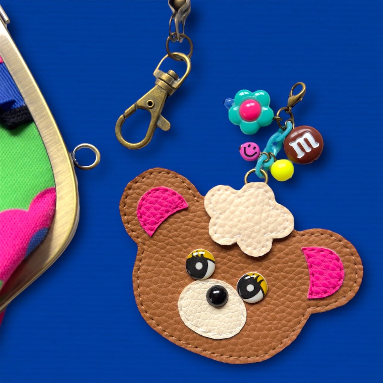 チャームは取り外し可能◎くまちゃんは合皮製です。
