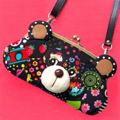 ヘキサゴンパッチの親子がま口財布 くま